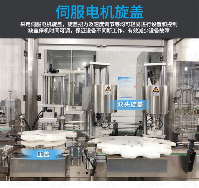 2、灌裝機以進口PLC電腦控制、伺服驅動計量,全彩色觸摸屏人機界面,一鍵完成計量切換確保容量之調整簡易、快捷、準確。是任何形式的灌裝機無法替代的;