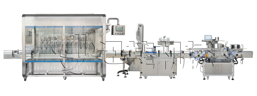 自動(dòng)油類灌裝旋蓋貼標(biāo)流水線