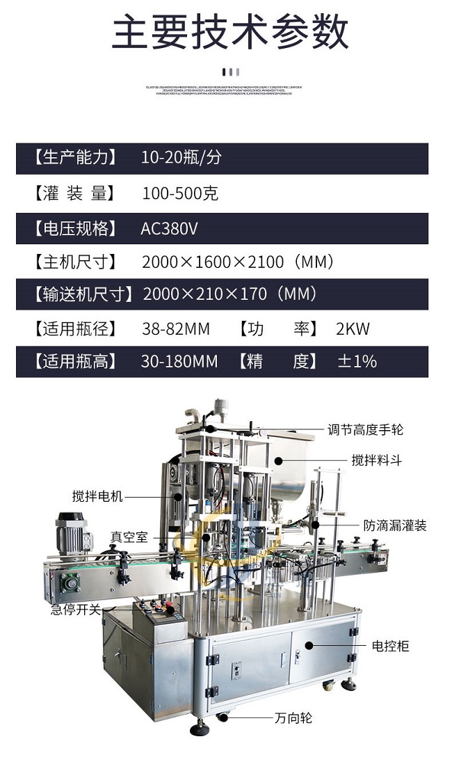 迅捷機械加工設備齊全,技術力量雄厚,選用德國PLC控制系統、臺灣AirTac的氣動組件和臺灣伺服的電控組件,從這幾個部件可以看的出來全自動牛肉醬灌裝機改善的不僅是質量,生產效率和產品的外觀包裝,還會不斷的引進國際上新的科學技術,全自動牛肉醬灌裝機用更好的質量滿足生活的需求。在自動化生產日漸普及的今天,全自動牛肉醬灌裝機讓企業的商品以更快的速度出現在市場中,畢竟一些繁雜的工作讓人工去完成的話不但麻煩,效率也不會很高,想要適應現代化的大規模批量生產,就需要全自動牛肉醬灌裝機的幫助來代替人工完成這些繁雜的工作。
